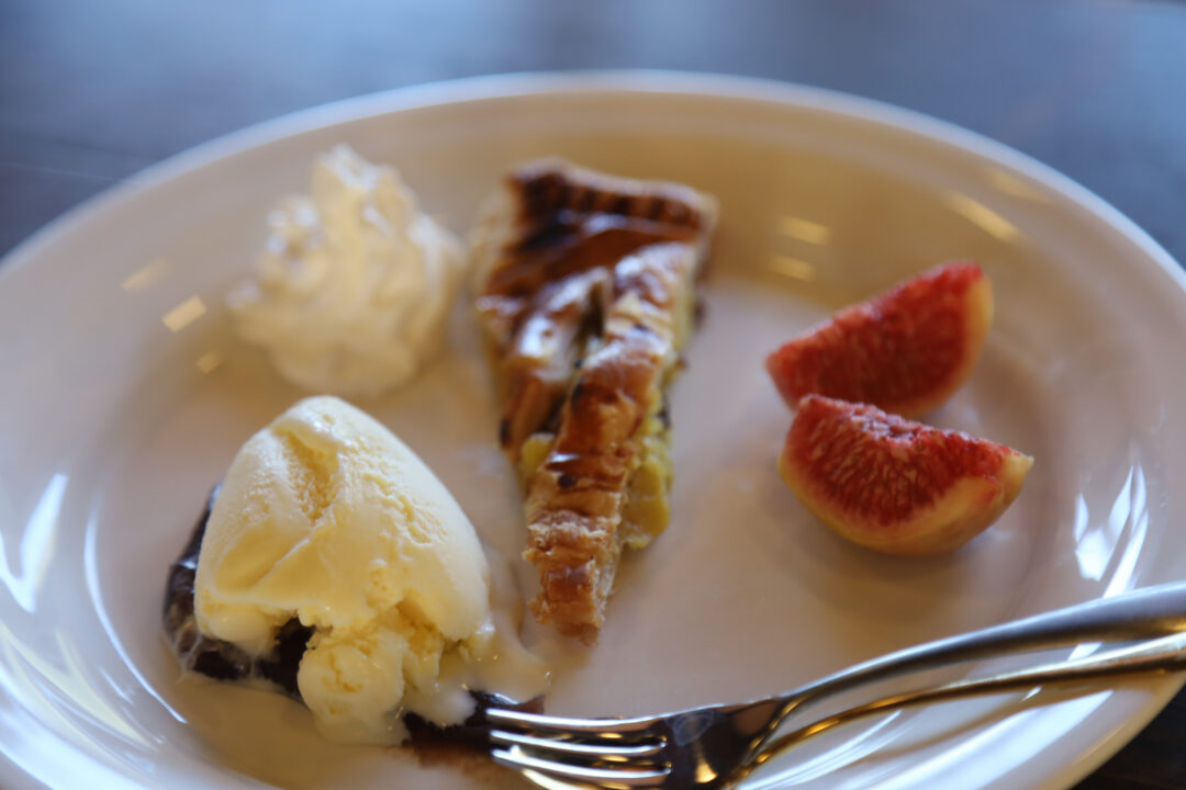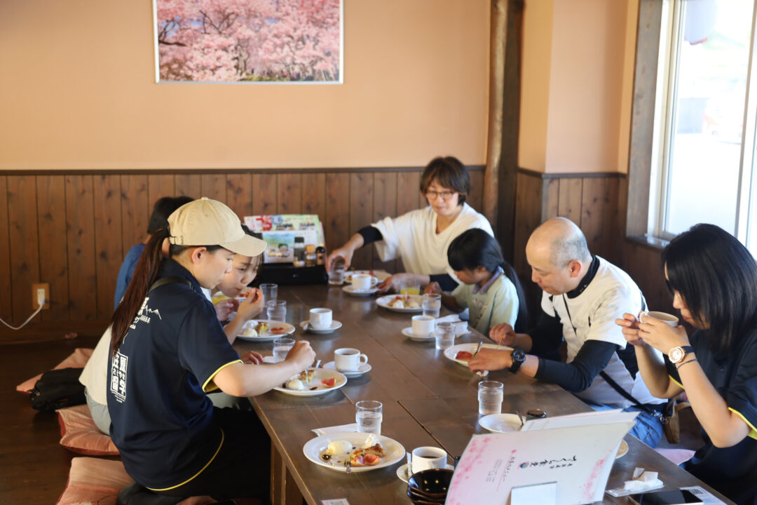体験後は「さくら食堂」へ移動し、さつまいもパイを囲んでおやつタイム。