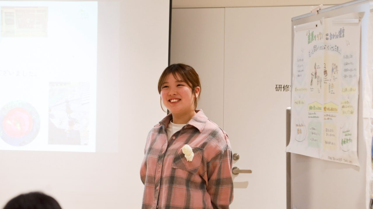 3月24日、庄原市内で「庄原さとやま留学(1年)」の卒業報告会が開催されました。報告者は、この1年間、庄原の地で暮らし、学び、活動してきた竹廣このはさんです。会場には、竹廣さんを温かく見守り続けてきた受け入れ農家の方々を中心に、約30名が駆けつけ、温かい雰囲気に包まれました。