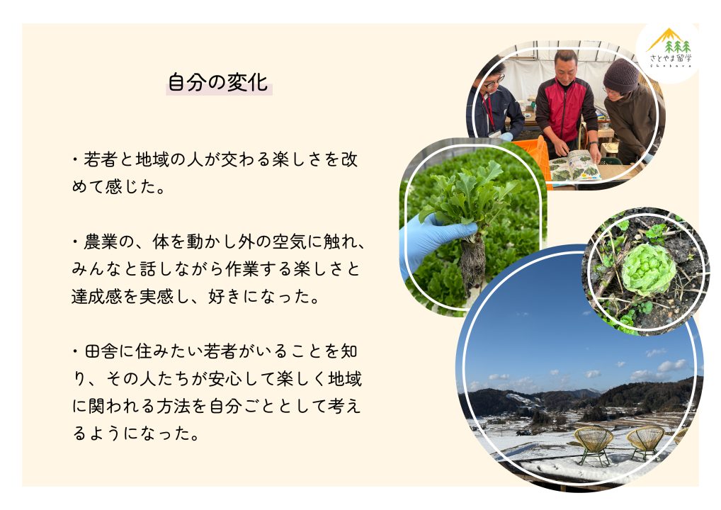 「庄原さとやま留学を通して、多くの出会いや学びを得ることができました!これからも、成長させていただいた庄原に関わり続けていきたいです。1年間、本当にありがとうございました!」と、そして力強く語った姿が印象的でした。