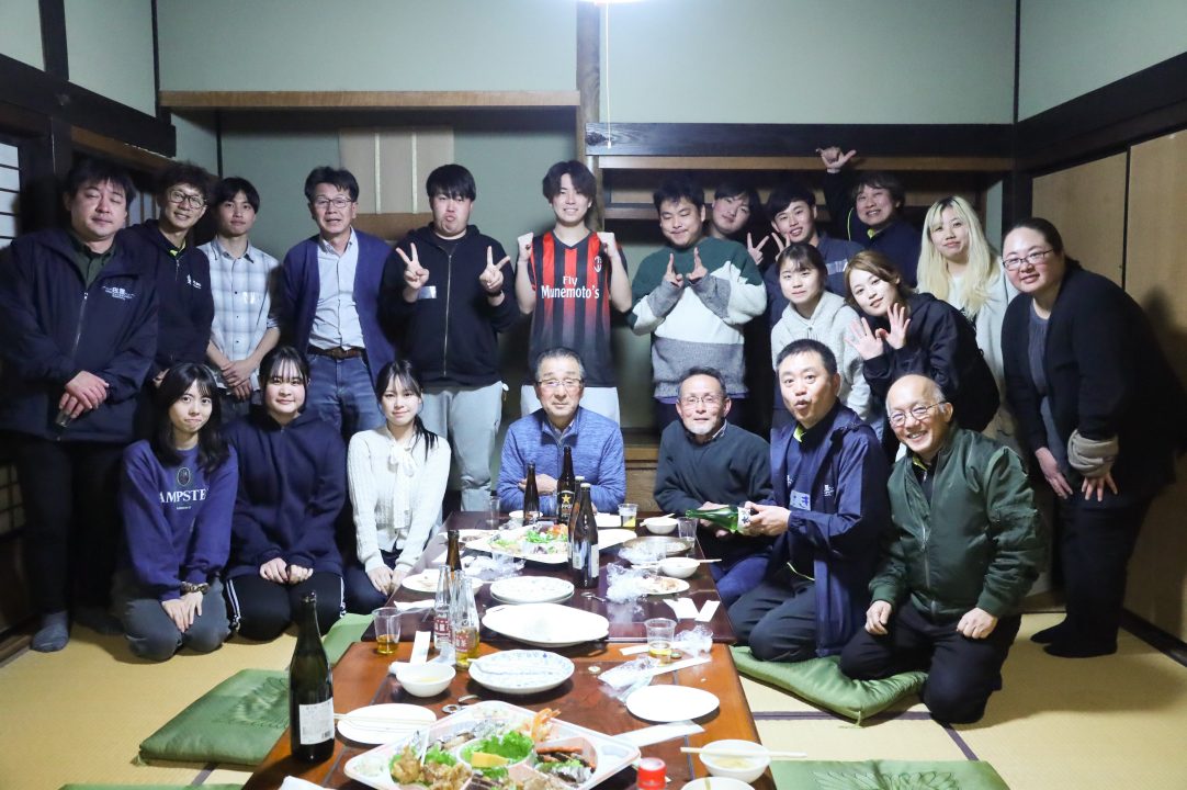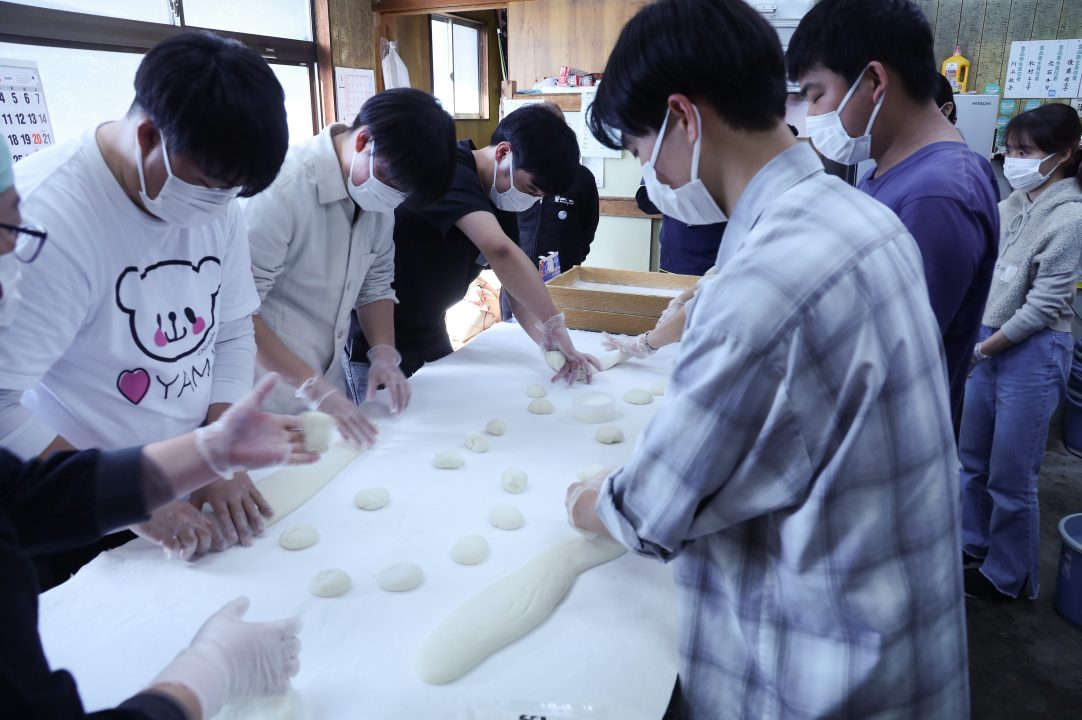 夜は、口和町の地域の方々との交流会。羽釜で炊いた熱々のおにぎりやお蕎麦、手づくりのお漬物など、心のこもった料理が並びました。デザートには、昼間にみんなで作ったおはぎも登場。食卓を囲む中で、地域の方のあたたかさに触れ、和やかな時間となりました。
