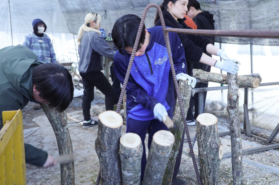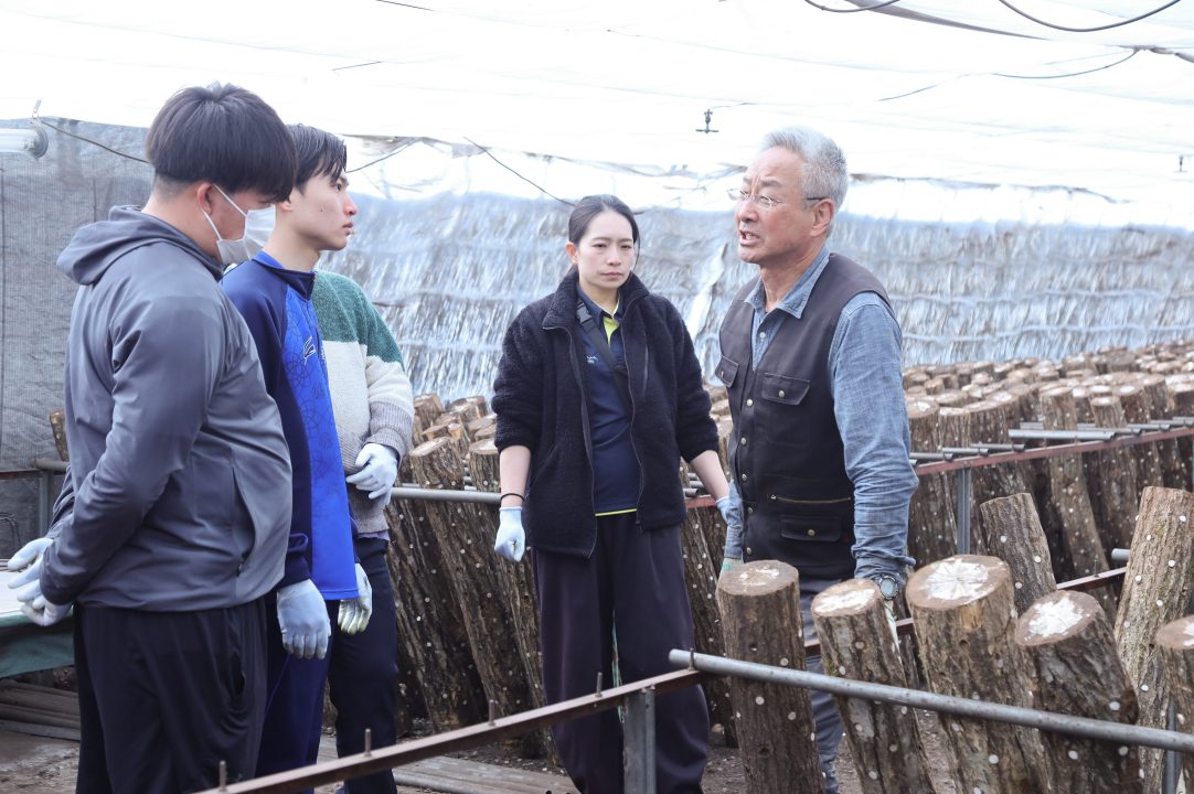 午前中は「しいたけ農園みやの」を訪問。しいたけができるまでの工程について学び、参加者からも質問が飛び交いました。実際に植菌作業も体験し、普段何気なく食べている食材の背景にある手間や工夫を知る機会となりました。