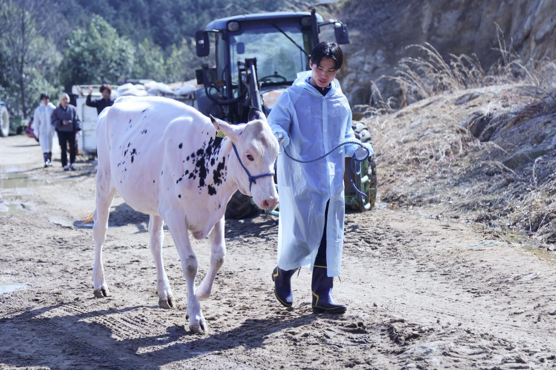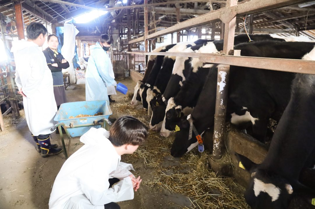 午後は「たなべ牧場」へ。牛への餌やりや除糞作業など、日々の仕事を体験。さらに、共進会に出る牛の散歩も行い、大切に育てられている様子を間近で感じることができました。