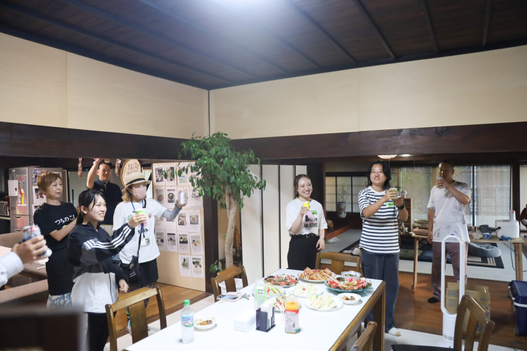 夜は「つちのこ邸」で地元の方や市役所の皆さん総勢18名と交流会。美味しいオードブルを囲み、初対面とは思えないほどにぎやかで、まるで親戚の集まりのような夜になりました。